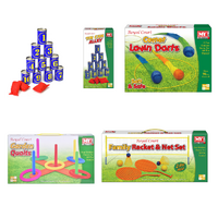 Tin Can Alley, Comet Lawn Darts, Plastic Garden Quoits & Family Racket & Net Bundle Set